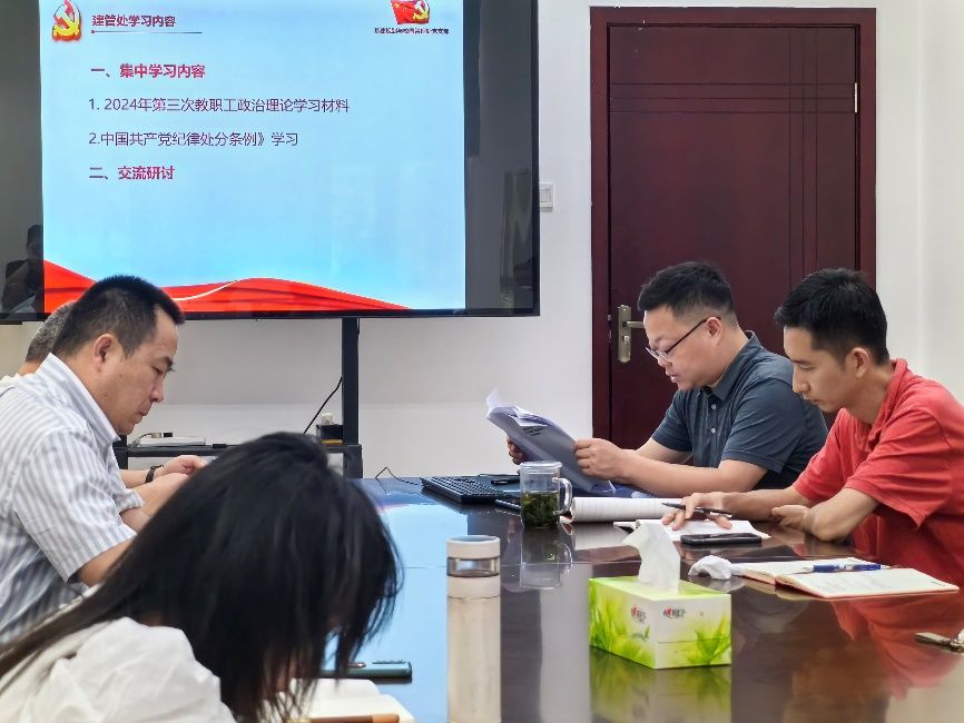 按照学校党委关于党纪学习教育的工作部署,2024年5月16日下午,基建规划与校园管理处组织全体职工集中学习《中国共产党纪律处分条例》和习近平总书记重要讲话精神,学习共分为二个阶段,由处长张清华同志主持。