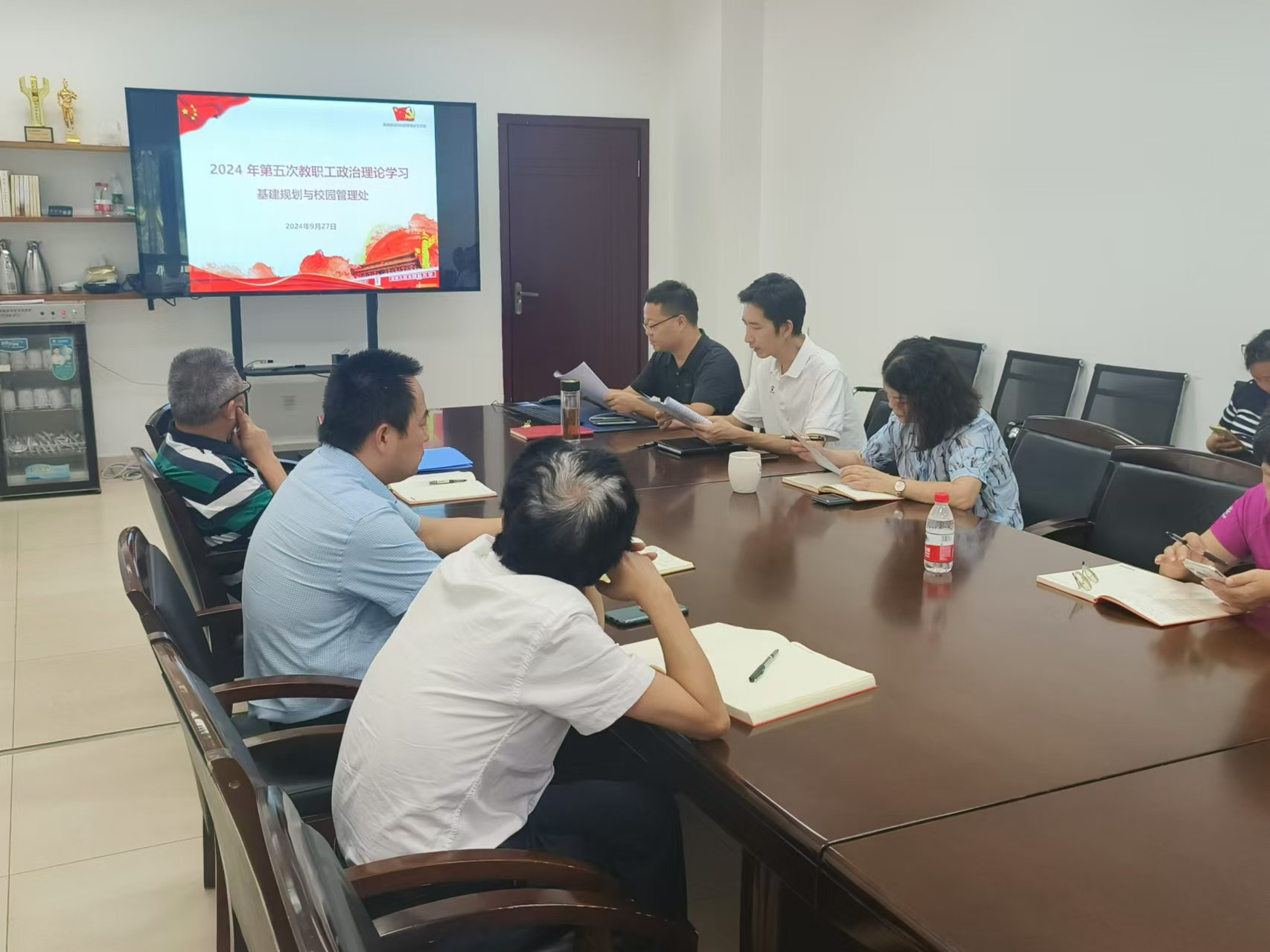 9月29日,基建规划与校园管理处开展第五次教职工政治理论学习,深入学习贯彻落实党的二十届三中全会精神、习近平总书记在纪念邓小平同志诞辰120周年座谈会上的重要讲话精神和习近平总书记在全国教育大会上的重要讲话精神。基建规划与校园管理处处长张清华主持会议并作总结发言,建管处全体职工参会。