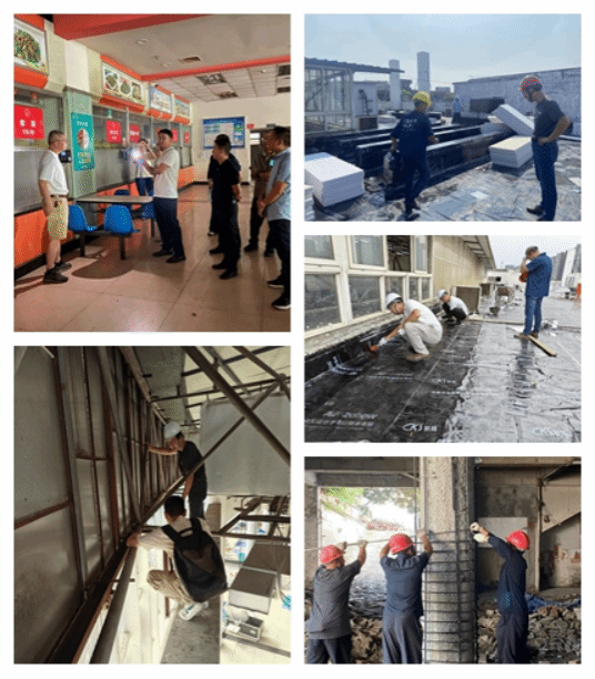 项目团队凭借 “工匠精神”,成功攻克重重难关,确保三食堂在新学期如期交付使用。工期紧张是首要难题,项目组成员主动加班加点,精心组织施工,严守工程进度节点;高温天气与雨季给施工带来极大阻碍,尤其是屋面防水作业和电梯井基坑开挖受到严重影响。项目组成员无惧酷暑与雨淋,灵活采取多种施工方案,全力保障工程进度;此外,整体房屋加固、地下美食城梳理、燃气改造以及地下管线碰撞等问题也为施工增添诸多挑战。项目组积极协调各方资源,科学谋划、因势利导,制定出合理有效的施工方案,有力推动各项改造工作顺利开展。