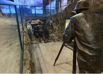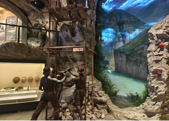 一幅“铁军鏖战成昆线”大型多维融合艺术演绎场景就生动再现了当时艰苦的作业环境,从四川盆地到云贵高原,穿越有“地质博物馆”之称的复杂山区,结合人物雕塑、多媒体、实物等多重手段,集中展示爆破、运渣、打钻、铺轨等工作内容。