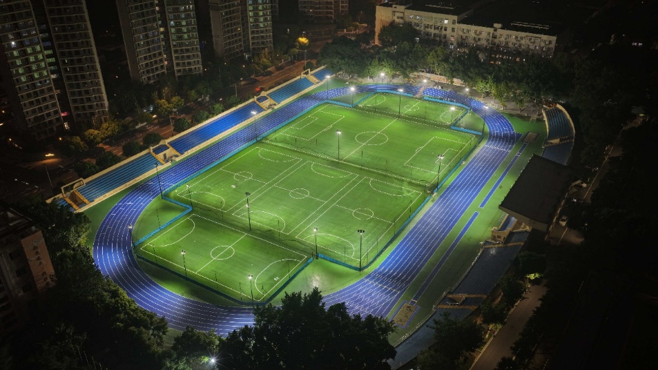 针对夜间运动痛点,焕新后的九里校区田径场增设高亮度低眩光专业照明灯,让夜跑族、运动爱好者都能告别"摸黑运动"的困扰。此外,健身区、看台区及管理用房的同步改造,进一步完善了运动配套服务功能。