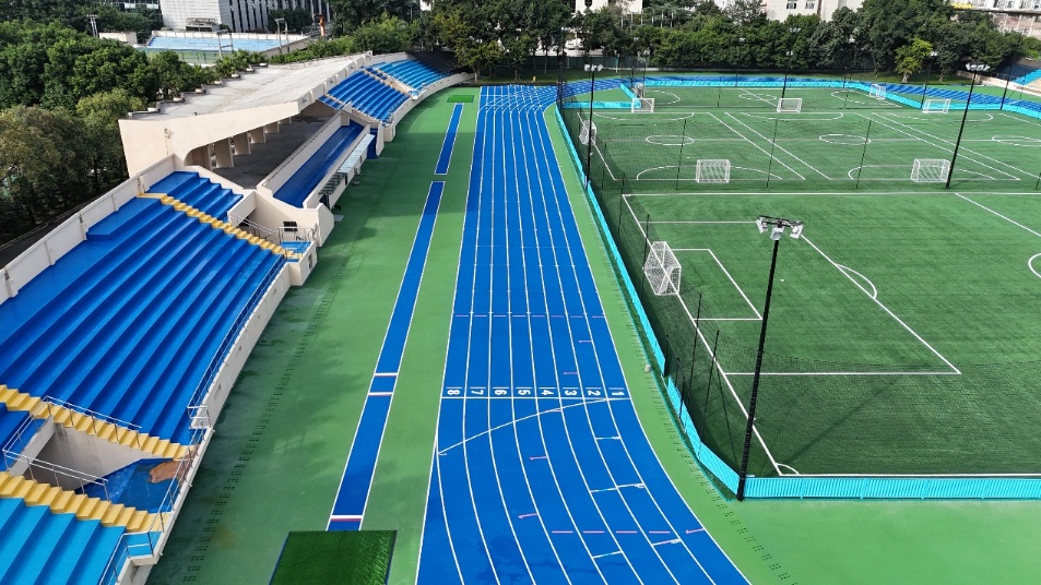 焕新后的九里校区田径场鸟瞰