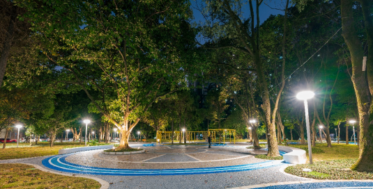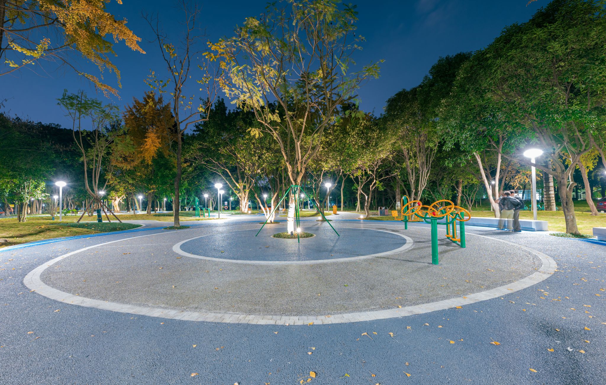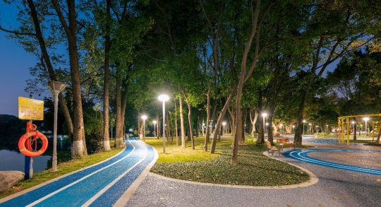 施工期间,面对雨水天气偏多的不利影响,项目团队制定多项针对性措施,在保障工程质量的前提下全力追赶工期,最终于 11 月 14 日顺利竣工并投入使用。此次改造总面积约 6000㎡,对场地进行全方位升级:优化加宽湖滨步道铺装,消除安全隐患;科学划分多元活动区、阳光草坪等功能分区,串联形成流畅的交通动线;补植以开花和色叶植物为主的中下层植被,丰富景观层次;增设水磨石休闲坐凳、洗手台、健身器材及照明灯具等配套设施,全面满足师生多样化使用需求。