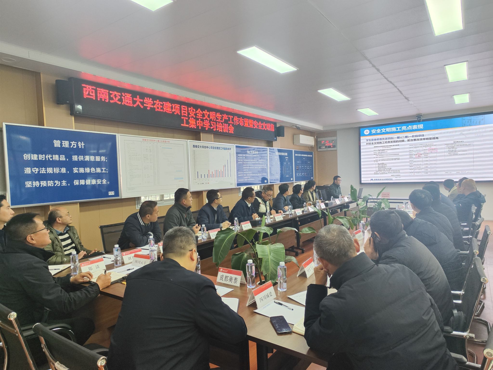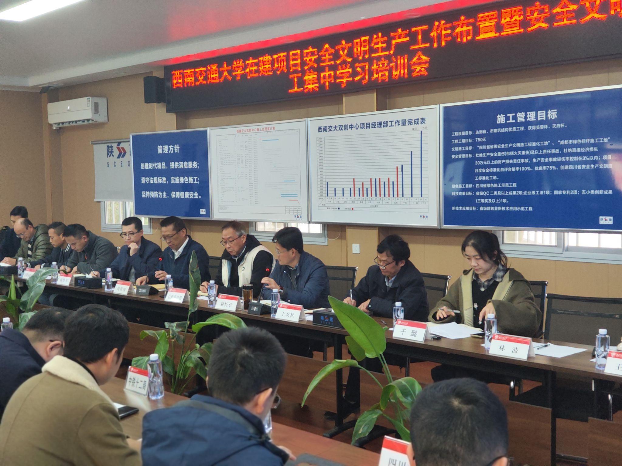 为深入贯彻落实校园安全生产要求,全面提升在建项目安全文明施工管理水平,强化各方责任意识,2025年11月28日上午,基建规划与校园管理处在犀浦校区大学生创新创业教育中心项目部组织召开安全文明生产工作布置会暨安全文明施工集中培训。党委常委、副校长刘长军出席会议并作工作部署。建管处领导班子成员,以及各参建单位代表参加会议。